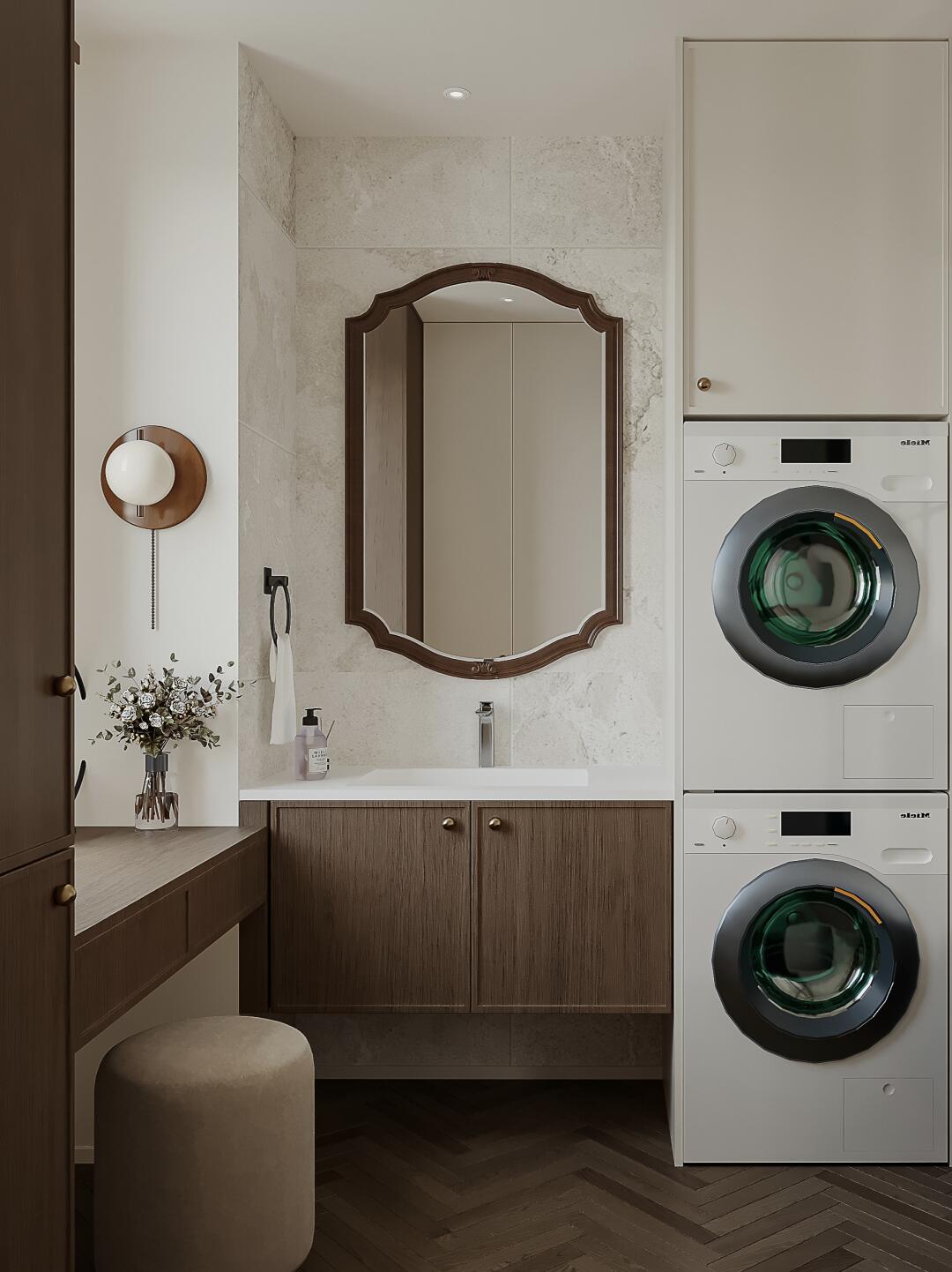 主臥衣帽間選擇復(fù)古玻璃推拉門,打破封閉感,增加空間流動(dòng)性,更加開闊、明亮。