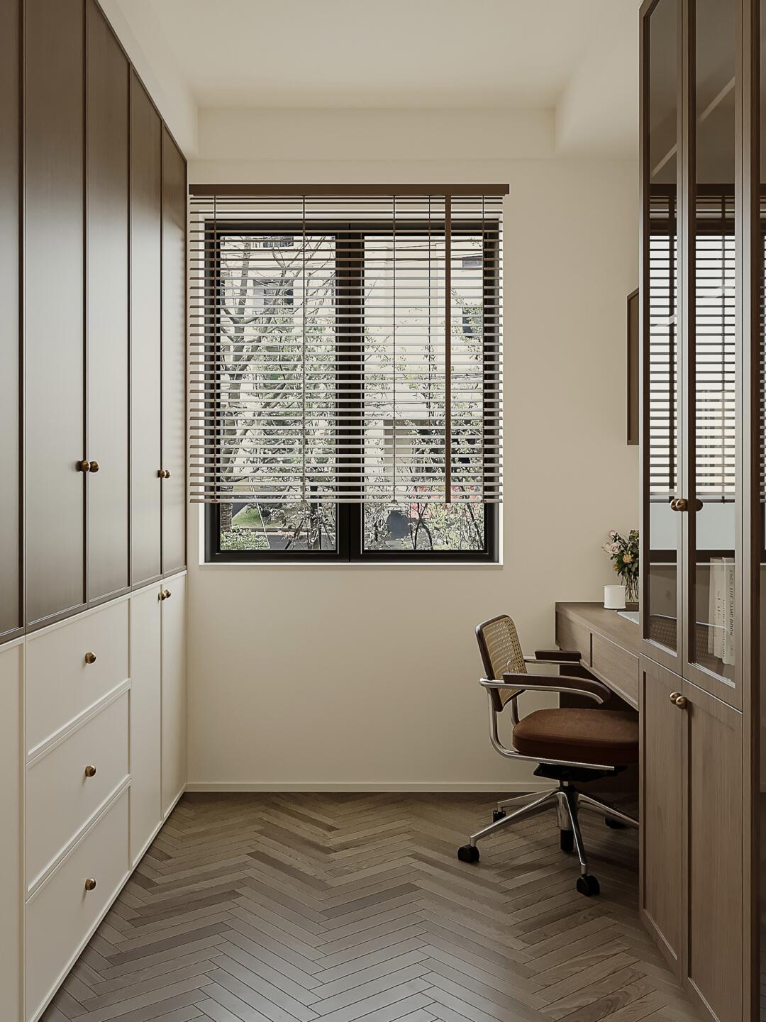 次臥根據(jù)業(yè)主的改造成衣帽間+書房的功能性房間,