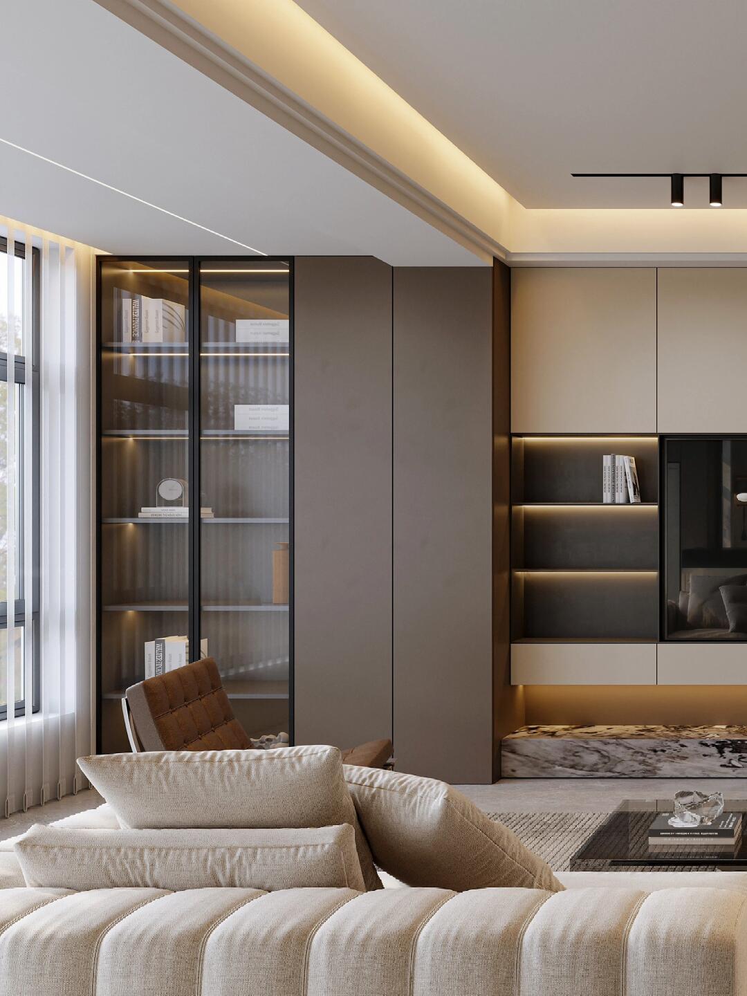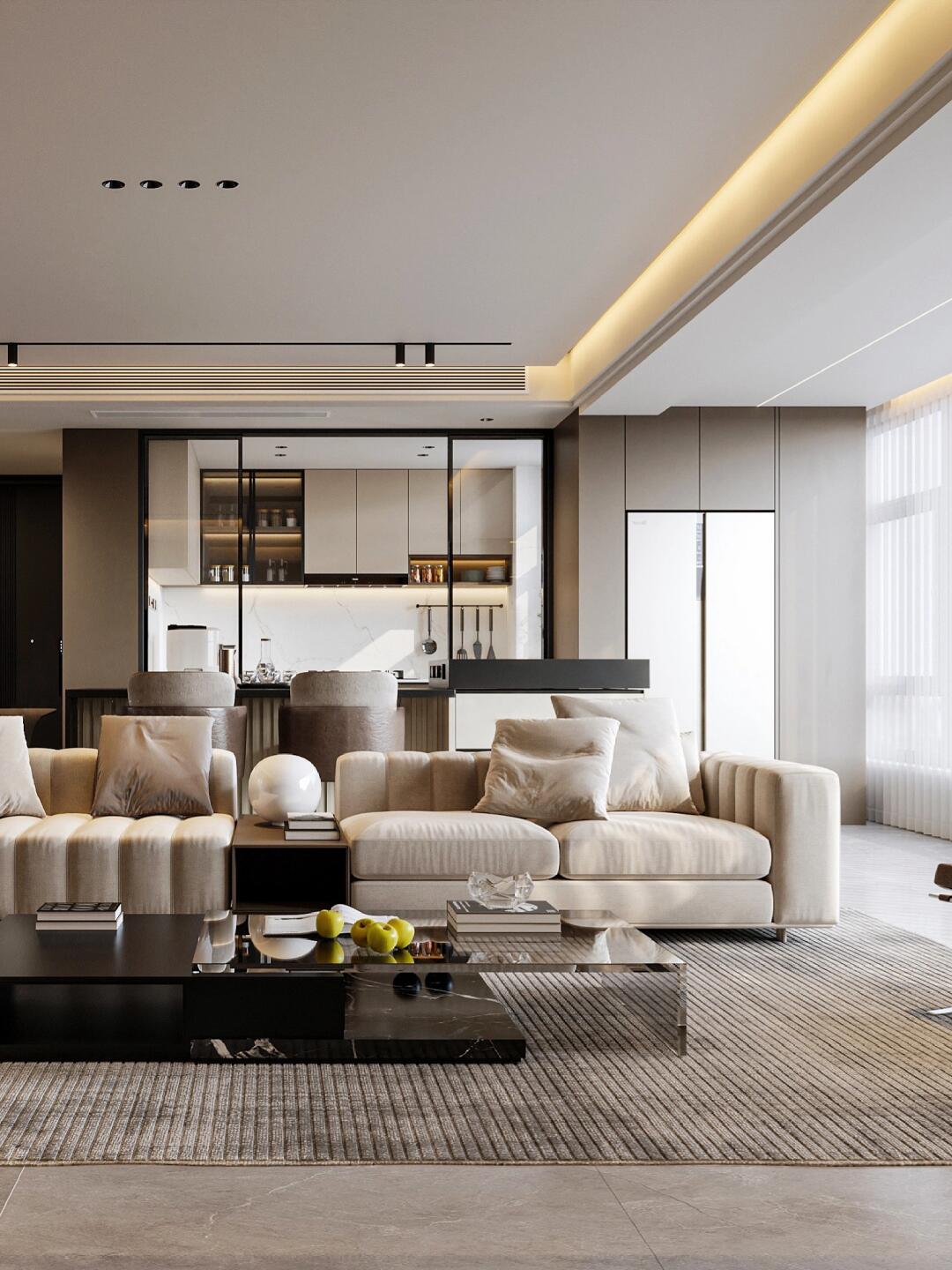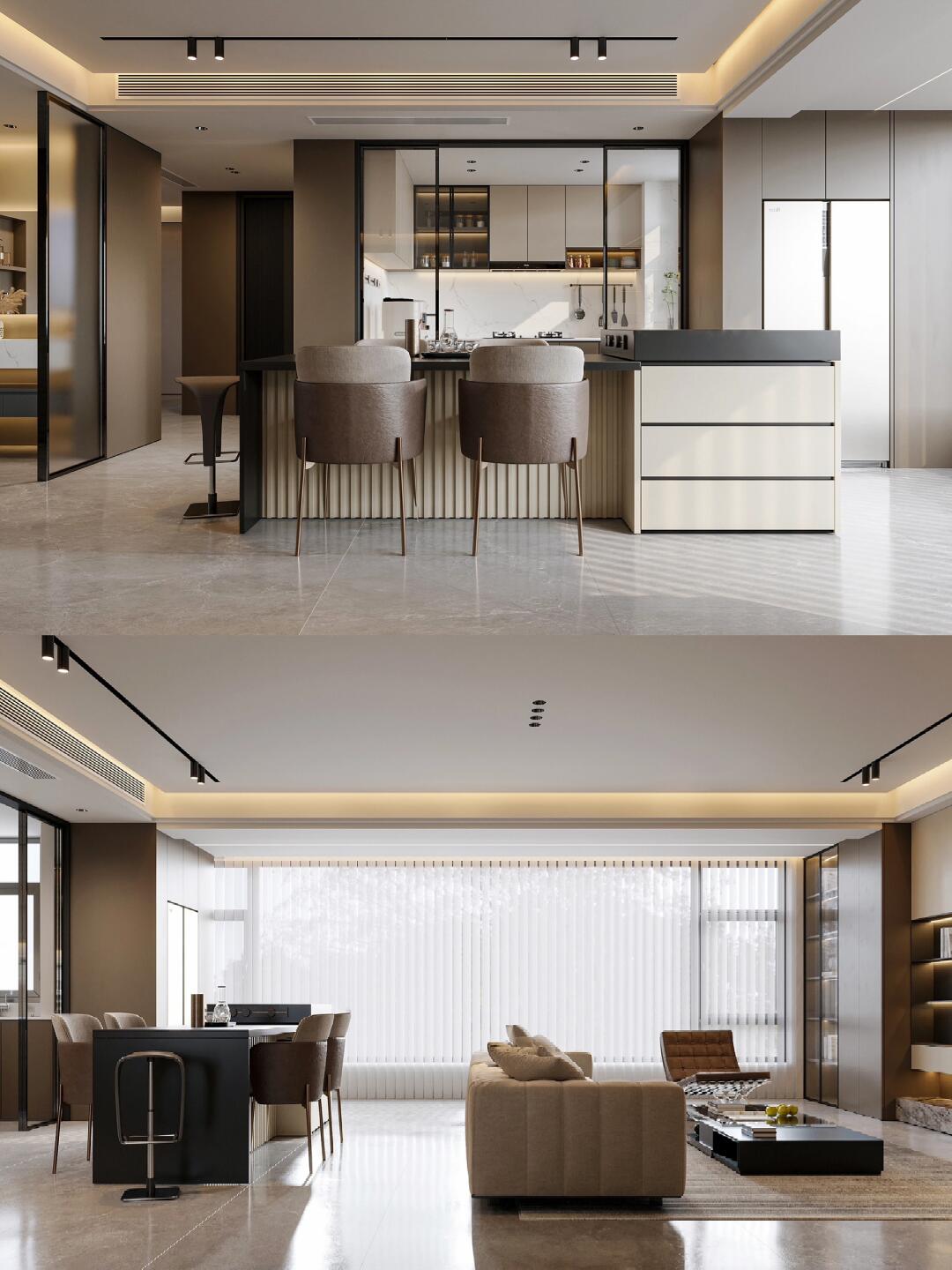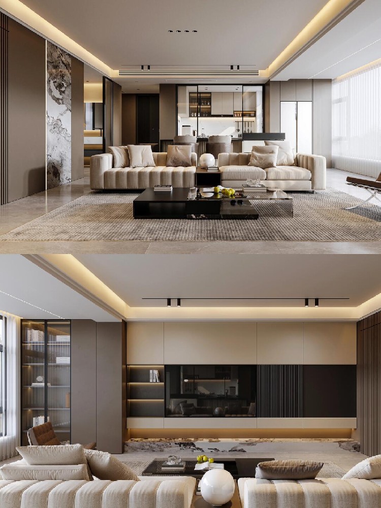 本案整體以意式輕奢風為主,強調(diào)空間的通透與舒適感,色調(diào)上以暖咖系為主基調(diào),