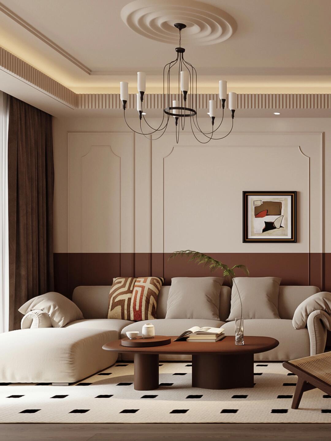 搭配大面積的淡淡杏色