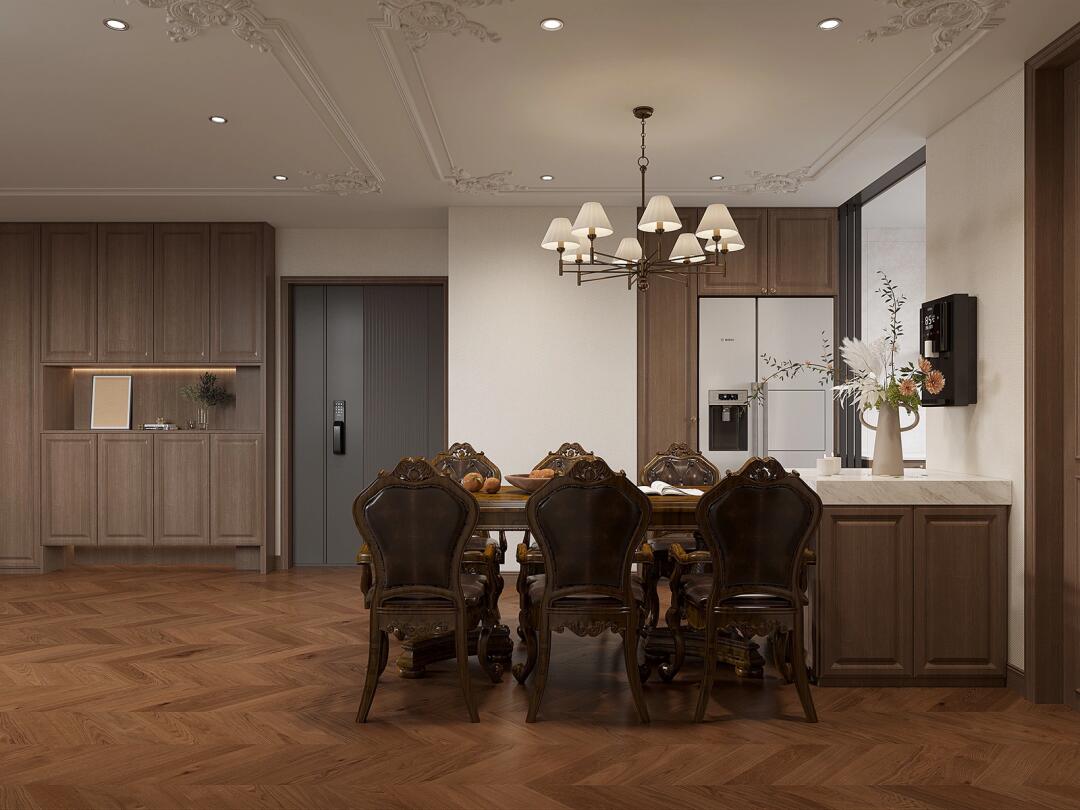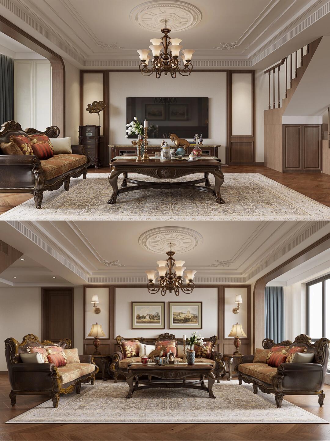 搭配了美式線條在空間中的描繪,并以深咖色作為基調(diào),營(yíng)造出了溫和優(yōu)雅而樸實(shí)的空間氛圍。