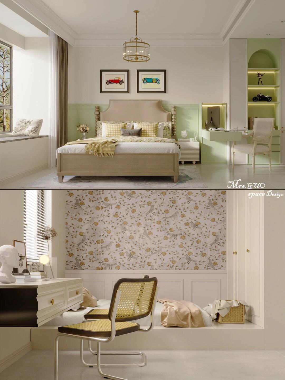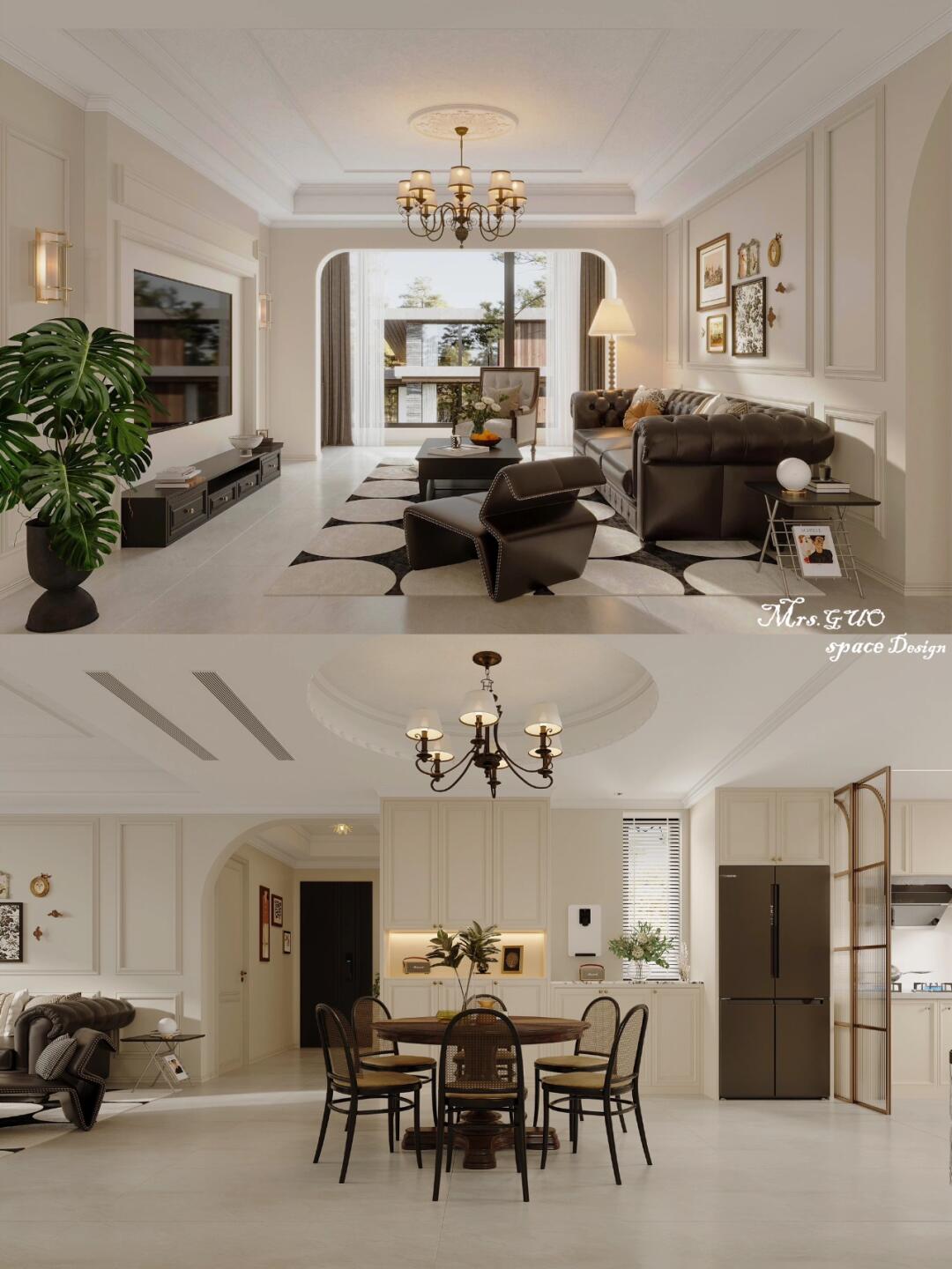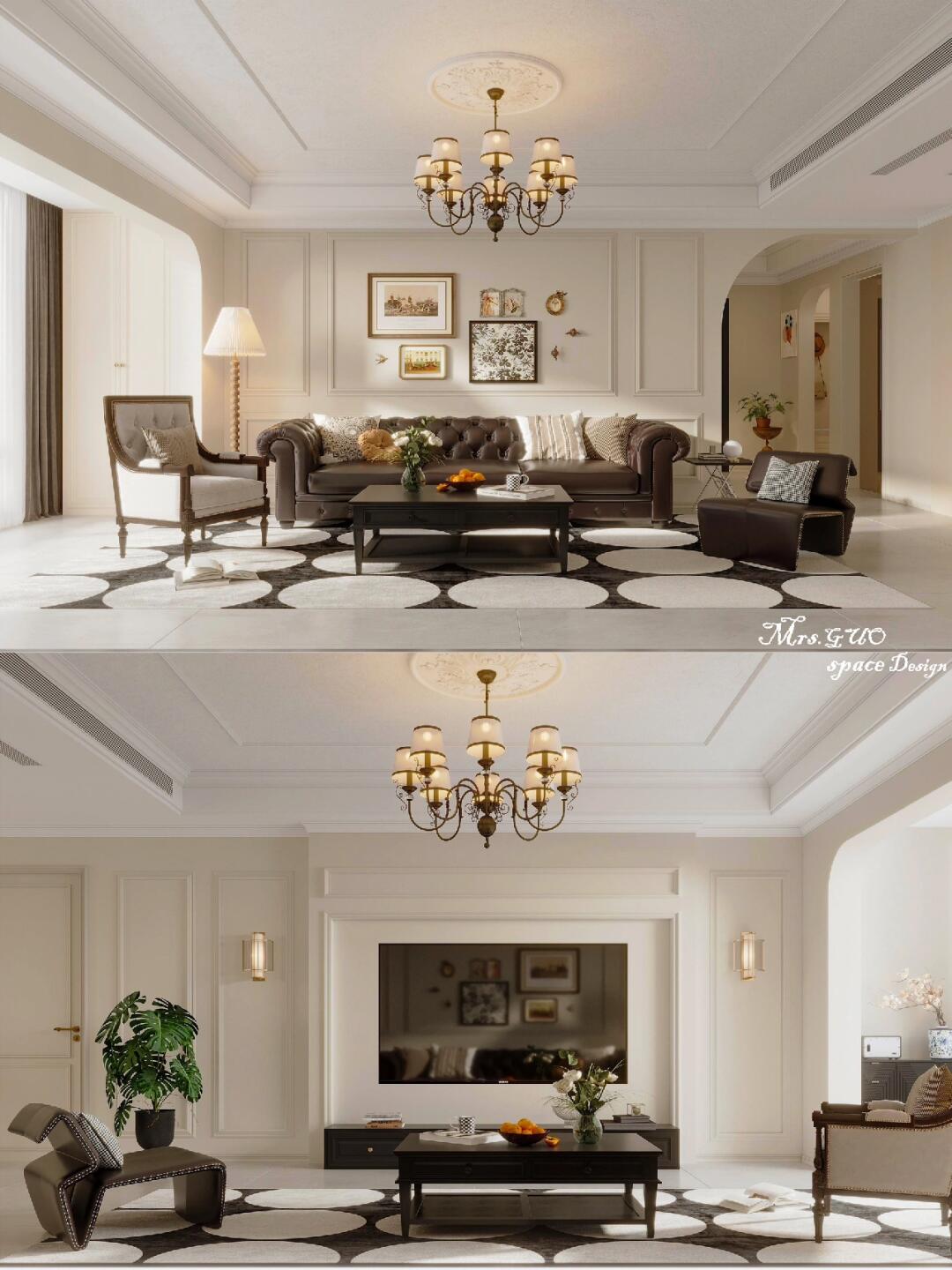 在這個(gè)方案中,設(shè)計(jì)為奶咖色調(diào)的現(xiàn)代美式風(fēng)格,