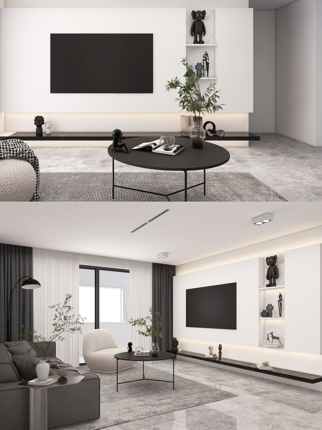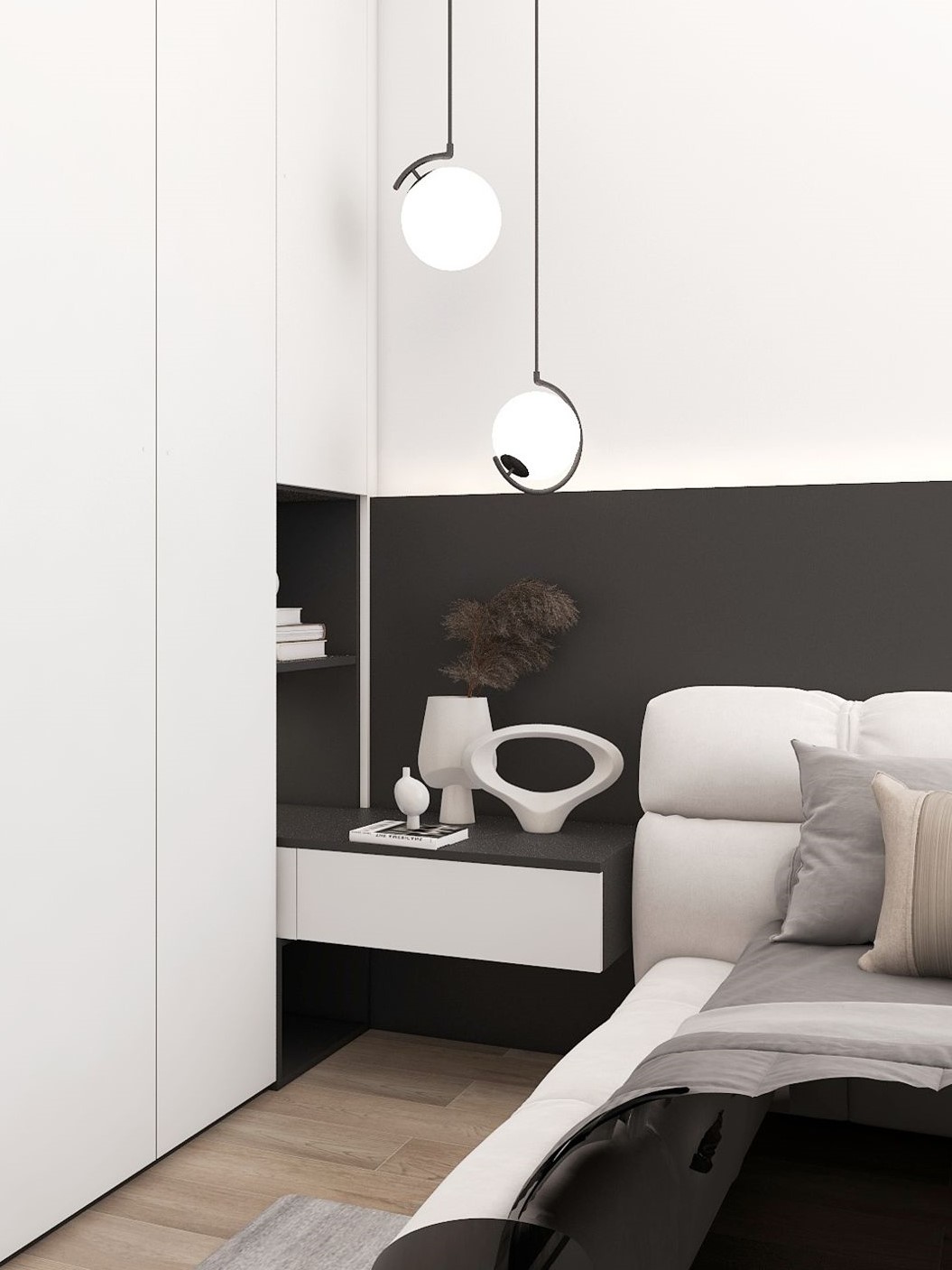房間整體色調(diào)以黑白為主,空間的現(xiàn)代質(zhì)感更顯精致