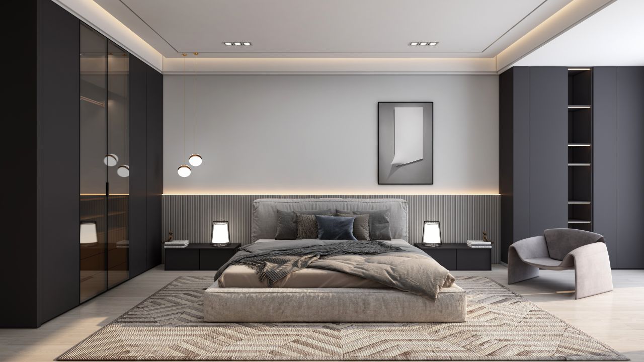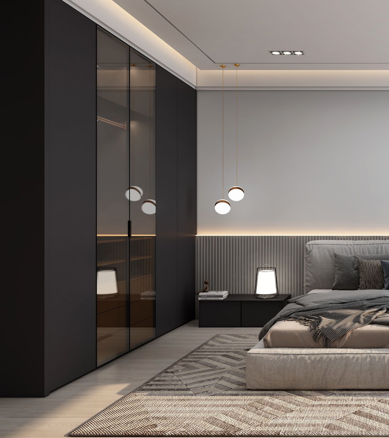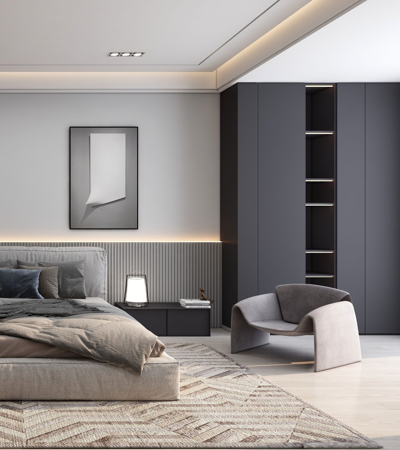 區(qū)別于傳統(tǒng)黑白灰給人的沉悶感,將簡(jiǎn)約耐看的深灰色塊穿插其中,