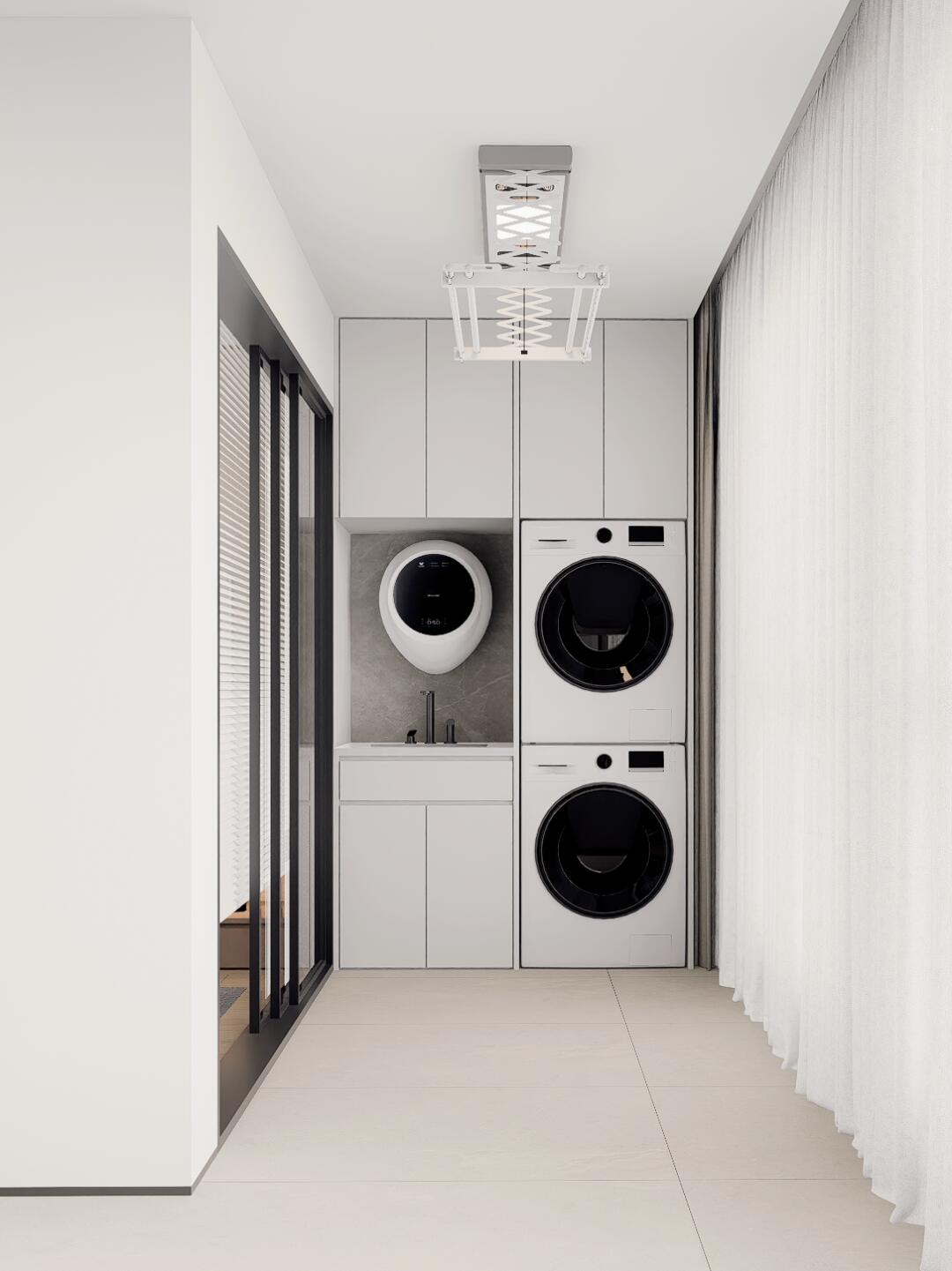 再搭配上反光燈槽,讓墻頂仿佛融為一體,營造出一種簡潔又大氣的空間感。