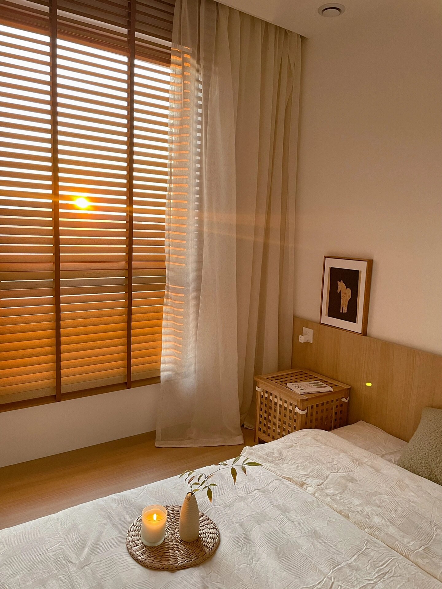 原木色系的床,放在臥室中,在休息放松的地方,感覺總是更加貼近自然,拉近了我們和自然感的距離。置身其中,能真切的感受到生活最初的美好。
