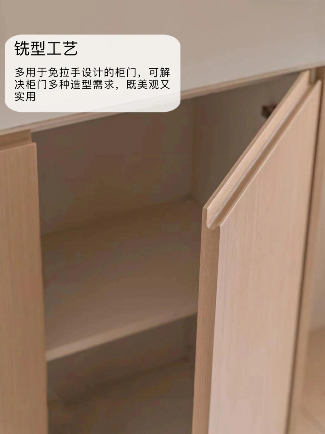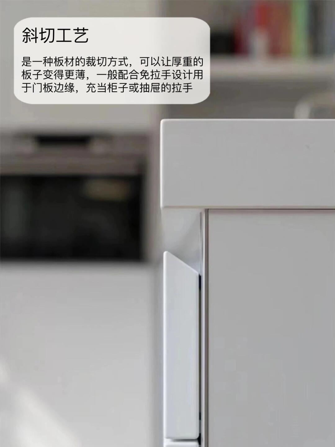 是一種板材的裁切方式,可以讓厚重的板子變更薄,一般配合免拉手的設(shè)計,用于門板邊緣,充當柜子、抽屜的拉手。