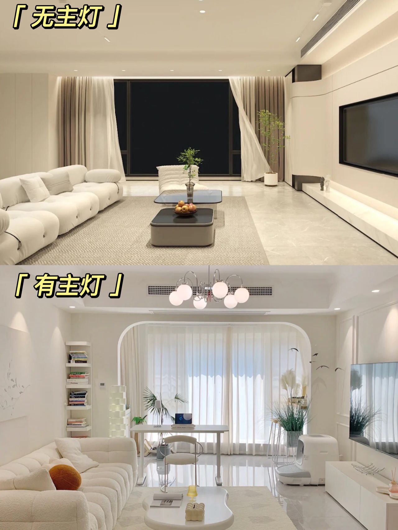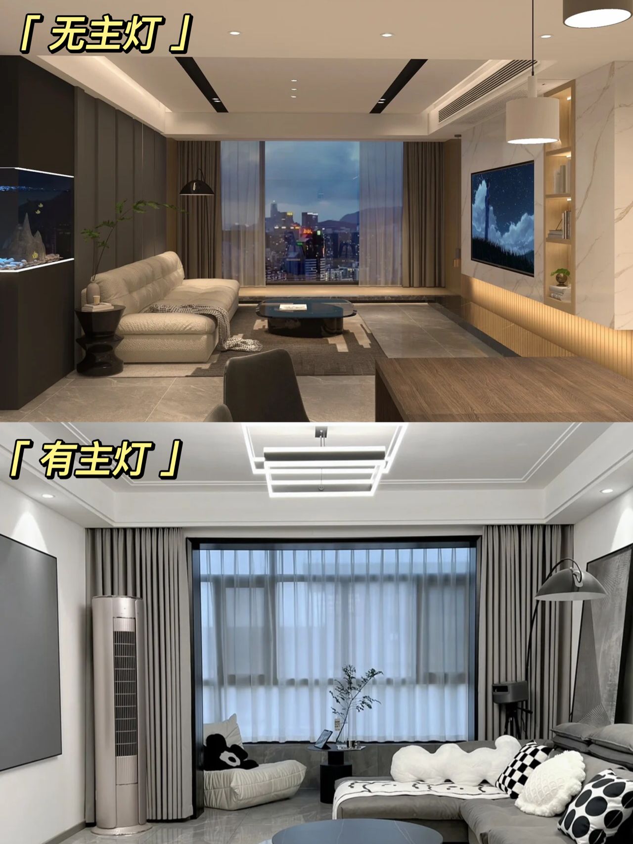 對(duì)于主燈的設(shè)計(jì),其實(shí)就是一個(gè)非常兩極化的審美,這張圖可能有意無(wú)意的在試圖“丑化”有主燈,實(shí)際上只要燈光瓦數(shù)到了,根本沒(méi)有這么暗。
