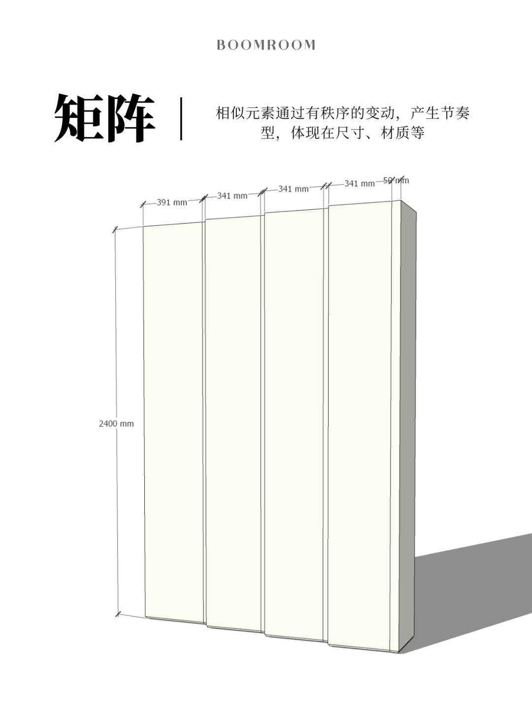 在空間內(nèi)進(jìn)行互相交錯(cuò)的設(shè)計(jì),在視覺上增加層次感,制造多元的變化狀態(tài) · ??設(shè)計(jì)手法②:圍合 在柜體的視覺空間上營造進(jìn)退關(guān)系,通過留白的方式做跳色,突出重點(diǎn)。 · ??設(shè)計(jì)手法③:進(jìn)退 營造空間體塊的進(jìn)退,增加空間層次感。 · ??設(shè)計(jì)手法④:疊級 通過不同層次的疊加和交錯(cuò),營造出獨(dú)特的視覺效果和空間韻律 · ??設(shè)計(jì)手法⑤:穿插 將較小的剖面穿插進(jìn)柜體打破常規(guī)布局,形成視覺沖擊力 · ??設(shè)計(jì)手法⑥:懸挑 通過柜體和墻體懸空,打造一種漂浮感 · ??設(shè)計(jì)手法⑦:離縫 在相鄰材料或體塊之間留出一定寬度的縫隙,增加層次感 · ??設(shè)計(jì)手法⑧:夾吊 用不同的材質(zhì)、體塊打破平面的秩序,從而創(chuàng)造出新的視覺焦點(diǎn) · ??設(shè)計(jì)手法⑨:矩陣 相似元素通過有秩序的變動(dòng),產(chǎn)生節(jié)奏型,體現(xiàn)在尺寸、材質(zhì)等 · ??設(shè)計(jì)手法⑩:咬合 將不同的體塊進(jìn)行組合,以創(chuàng)造出更豐富、有層次的視覺效果