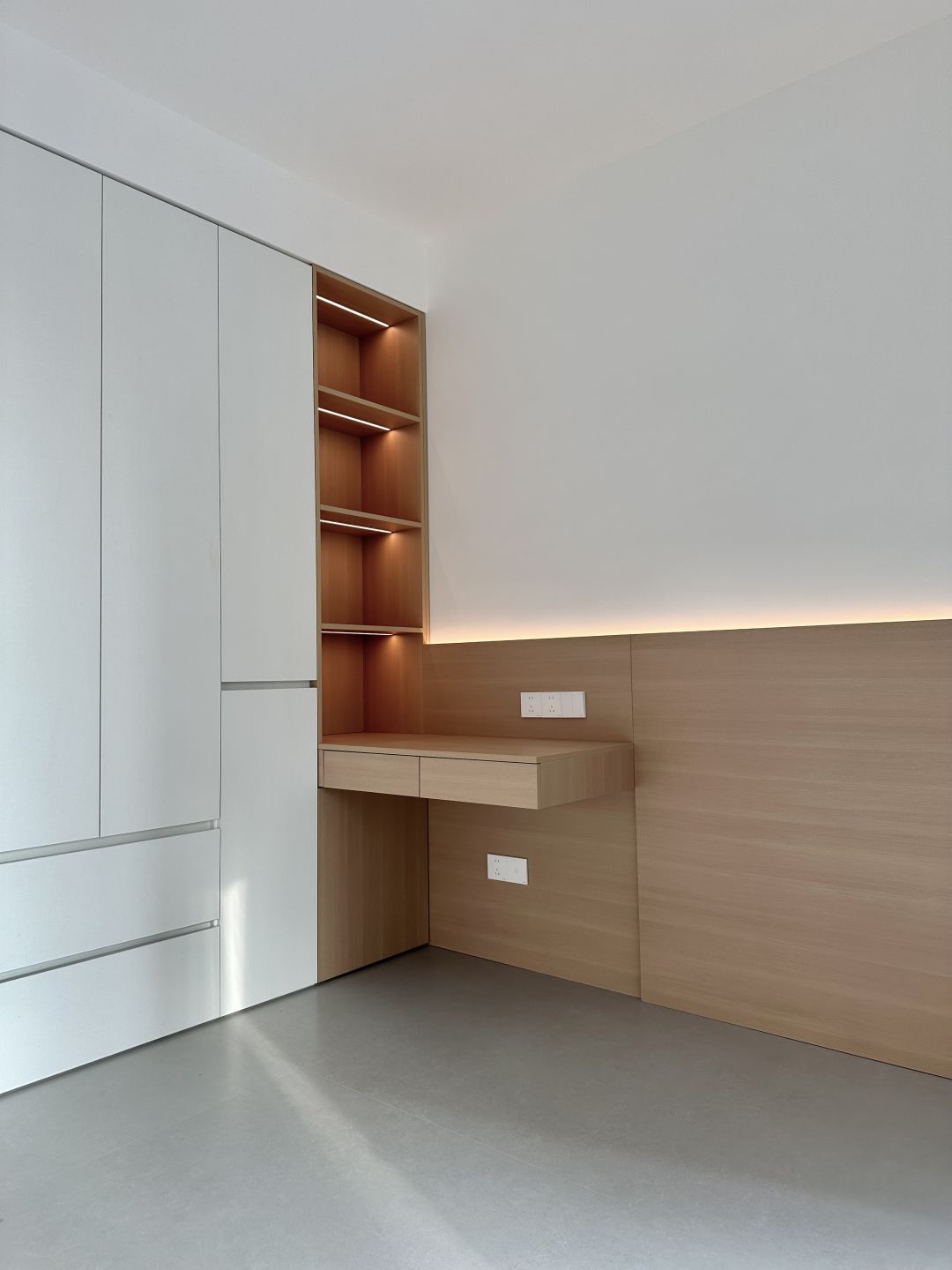 用護(hù)墻板與隱形門搭配出來(lái)的效果是一體極簡(jiǎn)的,更顯大氣