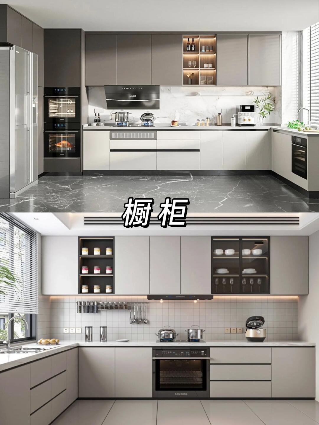 餐邊柜適合做一門到頂,提前預(yù)留好電源插座,還可以加入玻璃元素,中間留空做開放式置物區(qū),空間大的搭配島臺(tái)用來(lái)擺放鮮花,切洗菜方便。