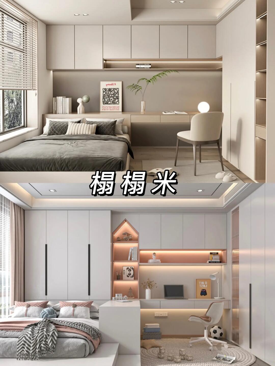 榻榻米銜接書桌,一體式柜子??看采戏绞莾?chǔ)物柜,床底全是儲(chǔ)物柜,過(guò)季的衣物可以收納起來(lái)。榻榻米的邊緣帶有小抽屜可放小朋友玩.