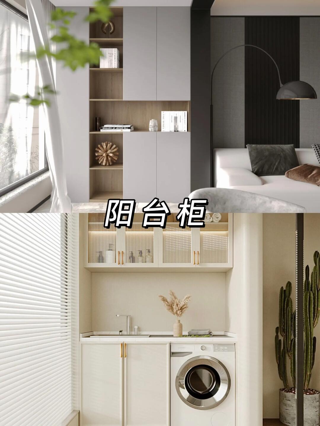 陽(yáng)臺(tái)的柜子都做免拉手設(shè)計(jì),兩側(cè)做一門到頂,設(shè)置小的儲(chǔ)物吊柜還能收納洗衣房里的小物品。做嵌入式洗衣機(jī)柜子,洗烘機(jī)上下疊放。