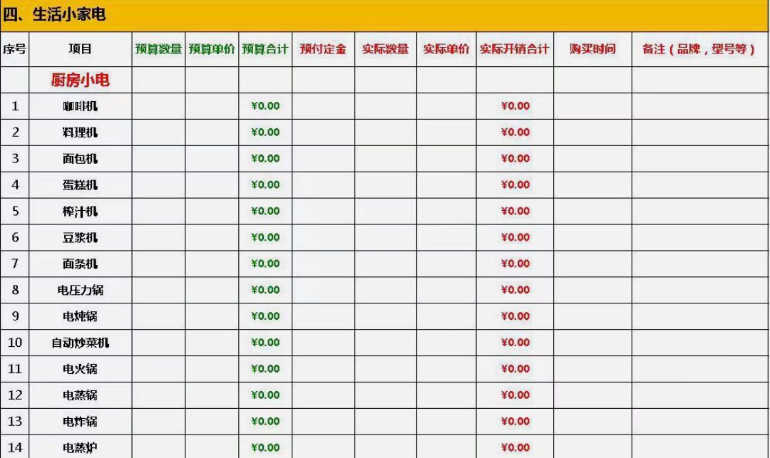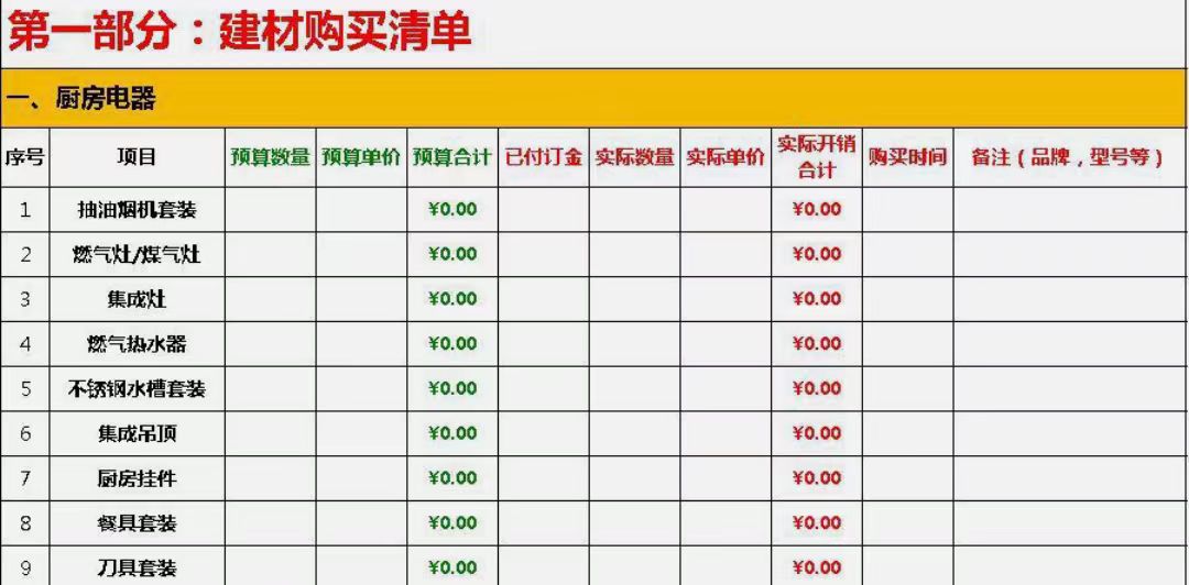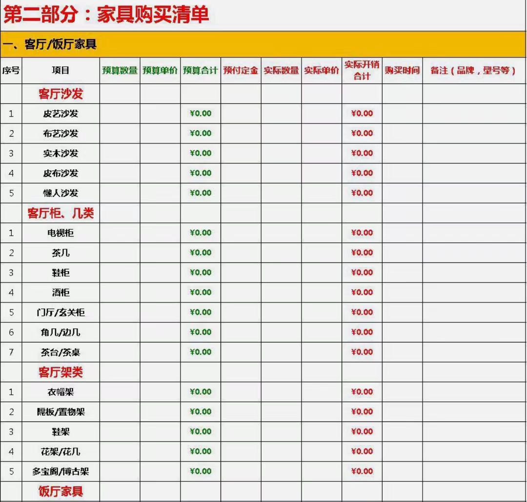 對了!除了需要知道上面裝修的基本流程外,裝修新手更需要一份新房裝修預(yù)算表!