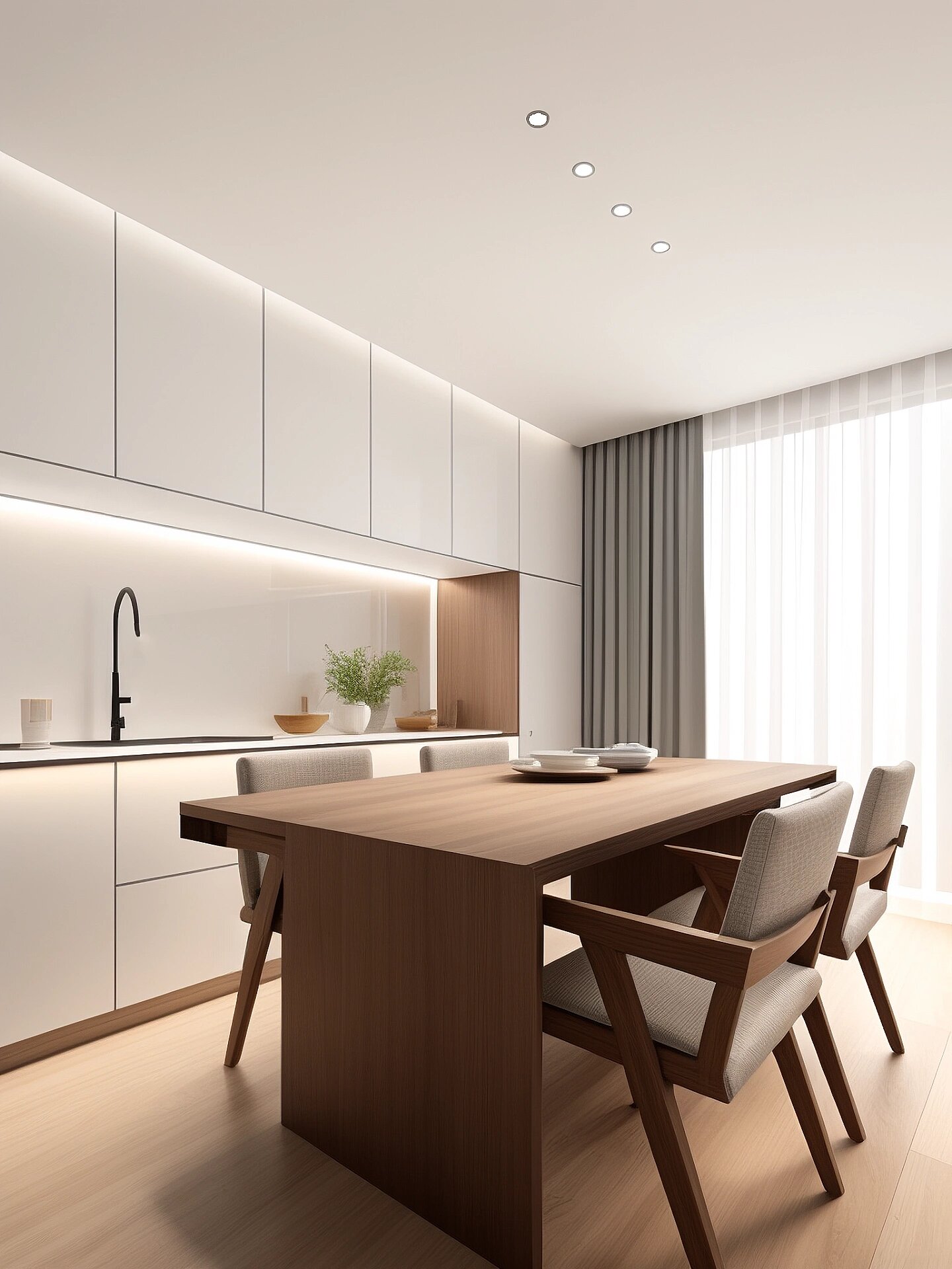 5.廚柜的高度和用途:廚柜的高度在離臺面70-75 cm左右,方便拿東西,還可以安裝升降收納五金,方便拿取上層物品。